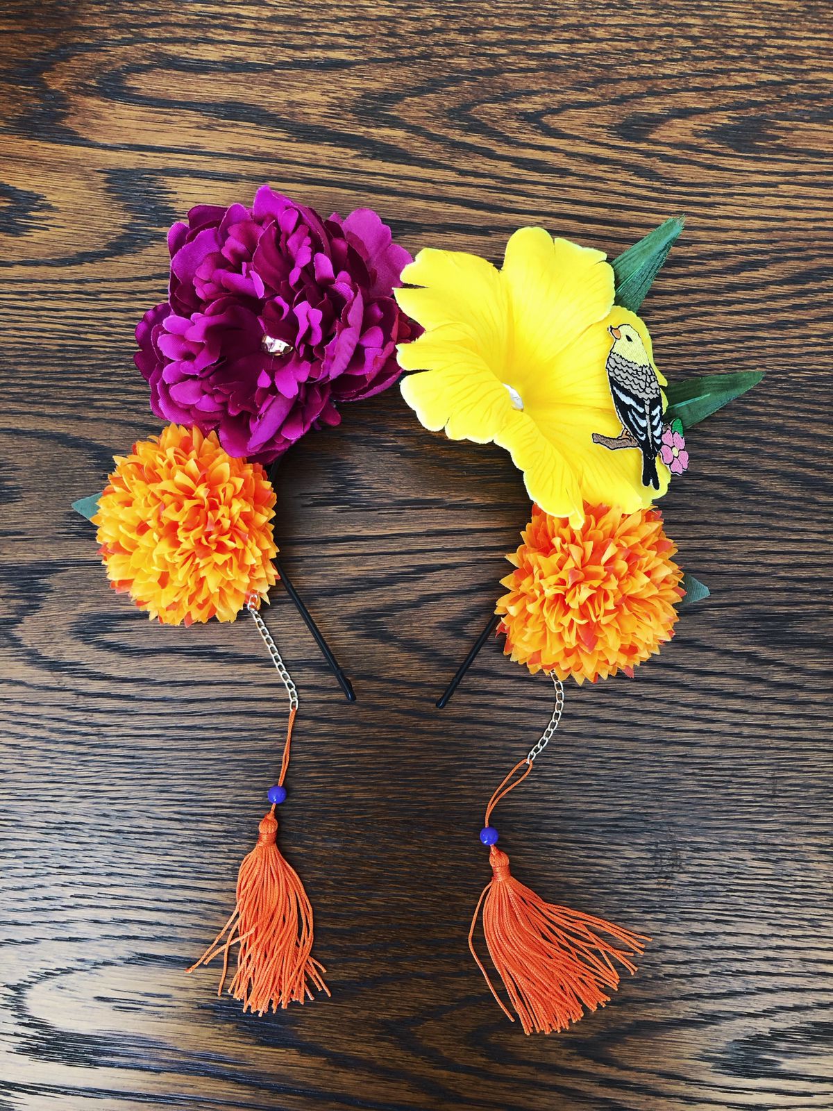 Materiais: abraçadeiras de plástico, arco de metal/ plástico e flores artificiais.